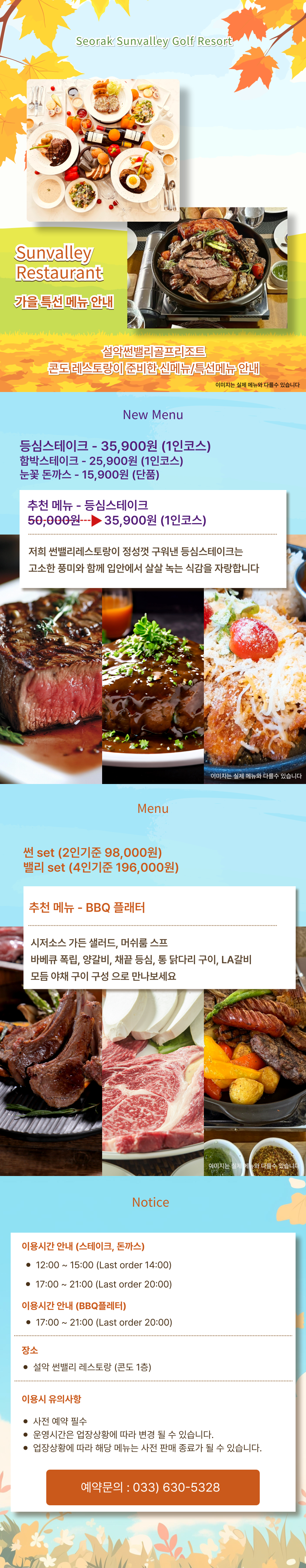 제목설악 콘도레스토랑 특선메뉴 안내 2025-11-05