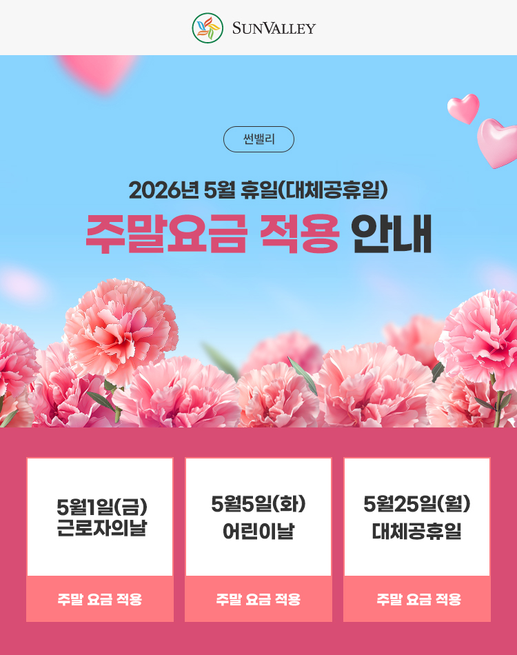 제목2026년 5월 휴일(대체공휴일) 주말요금 적용 안내 2026-04-06