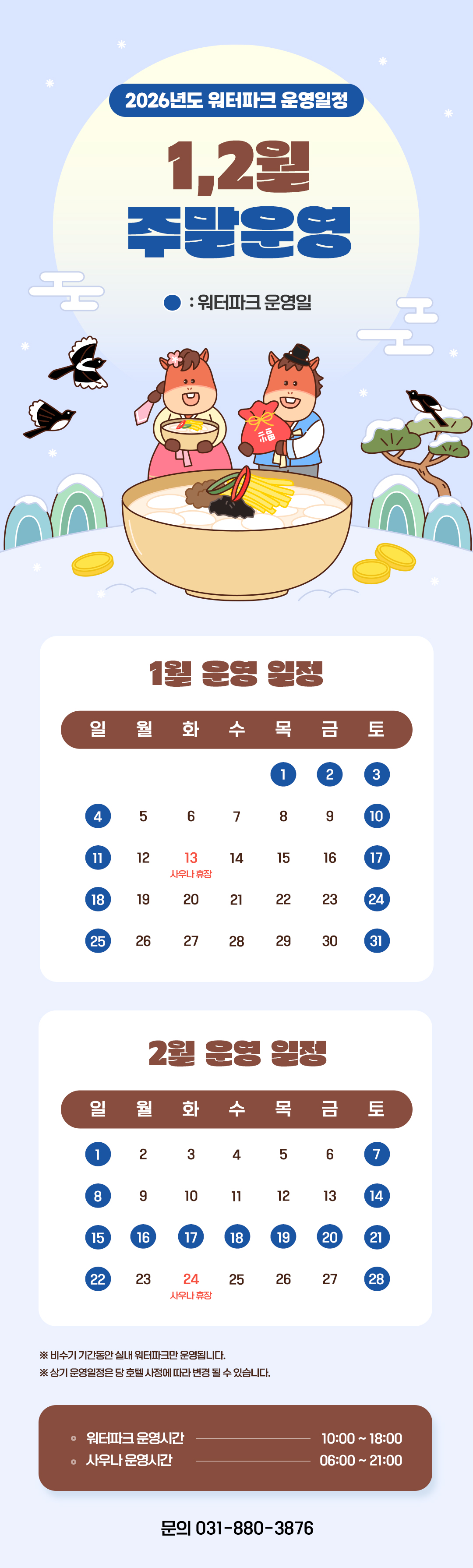 제목워터파크 2026년 1,2월 운영안내 2025-12-01
