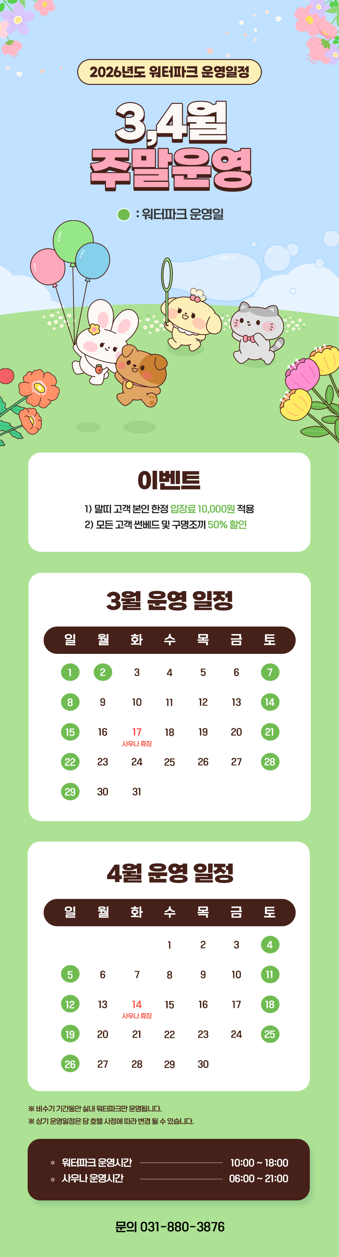 제목워터파크 2026년 3,4월 운영안내 2026-02-02