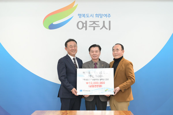 좌측부터 이충우 여주시장, 민문기 대표, 윤은호 장학회 이사장 / 여주시 제공