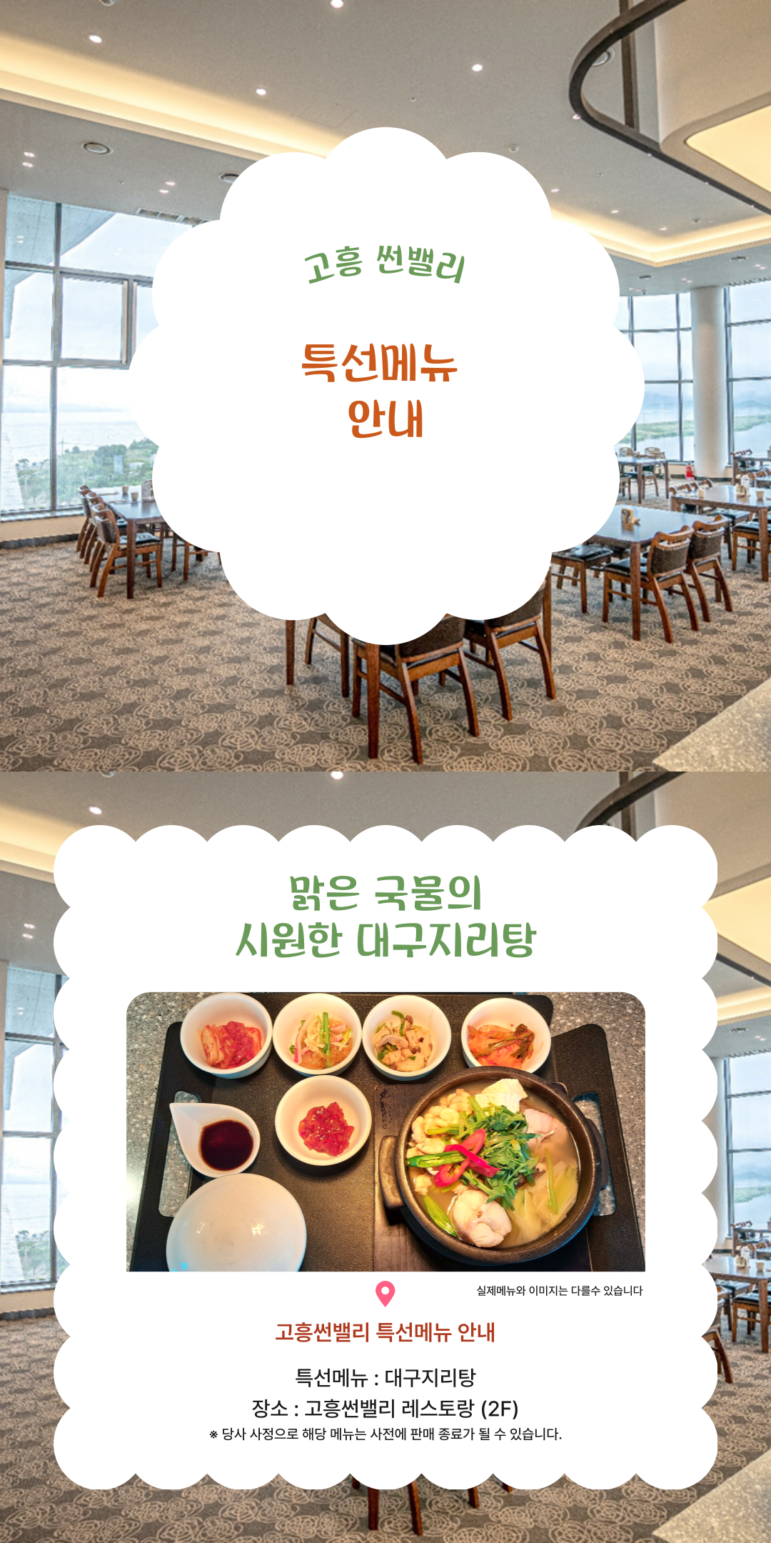 제목고흥썬밸리 특선메뉴 안내 2025-11-12