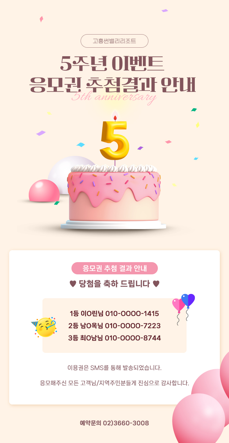 제목5주년 이벤트 응모권 추첨결과 안내 2025-12-16