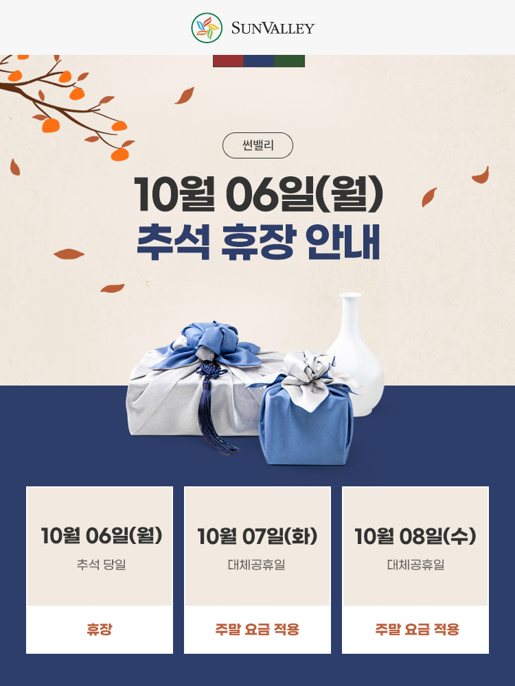 제목썬밸리 10월 06일(월) 추석 휴장 안내 2025-09-16
