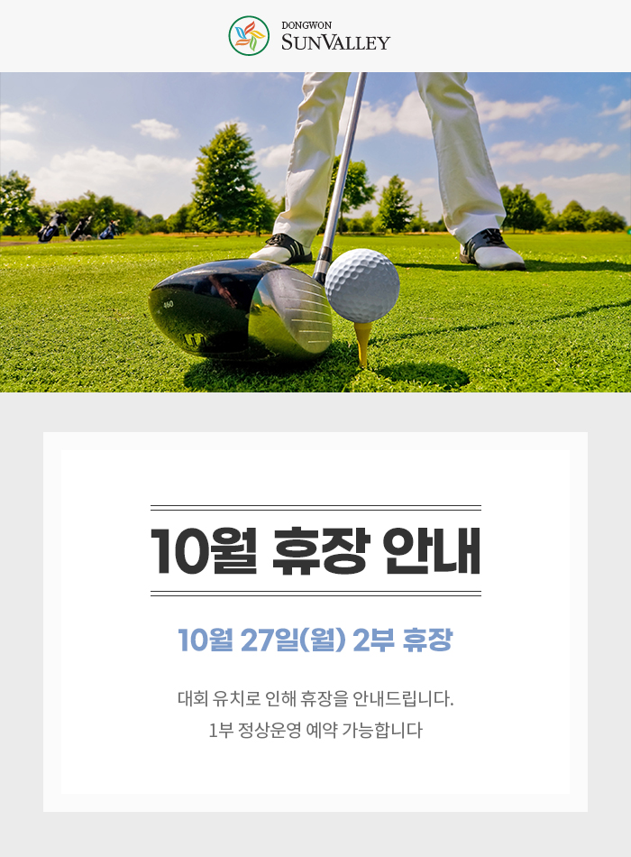 제목동원썬밸리 10월 휴장안내 2025-09-29