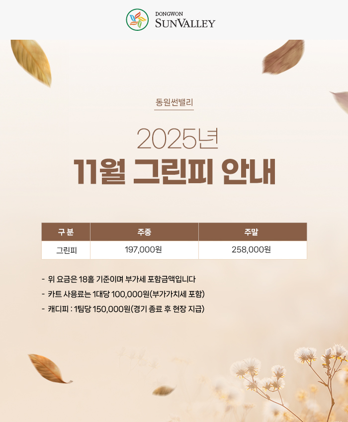 제목동원썬밸리 2025년 11월 그린피 안내 2025-10-10