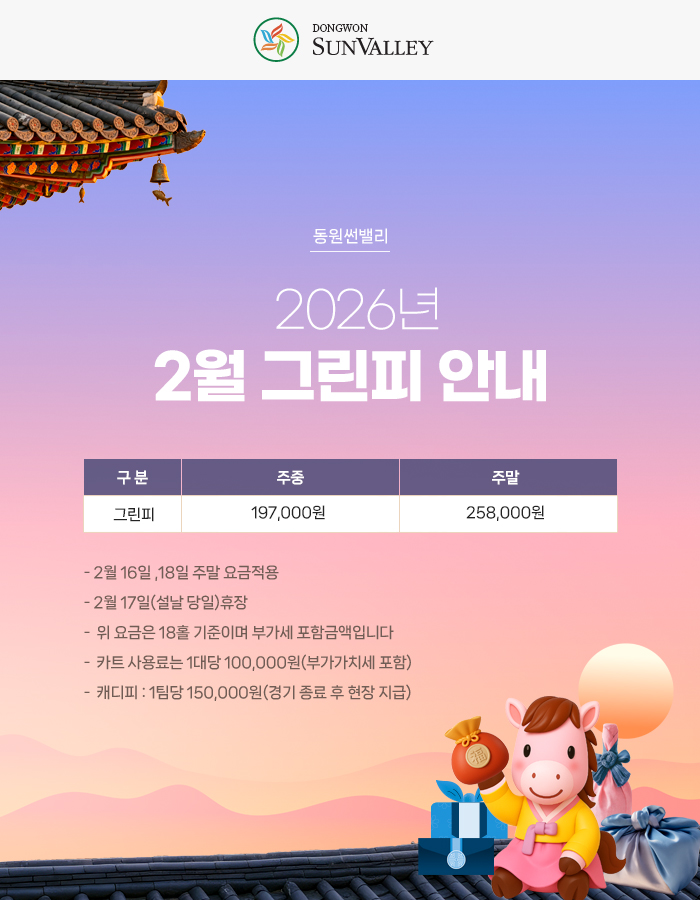 제목동원썬밸리 2026년 2월 그린피 안내 2026-01-19