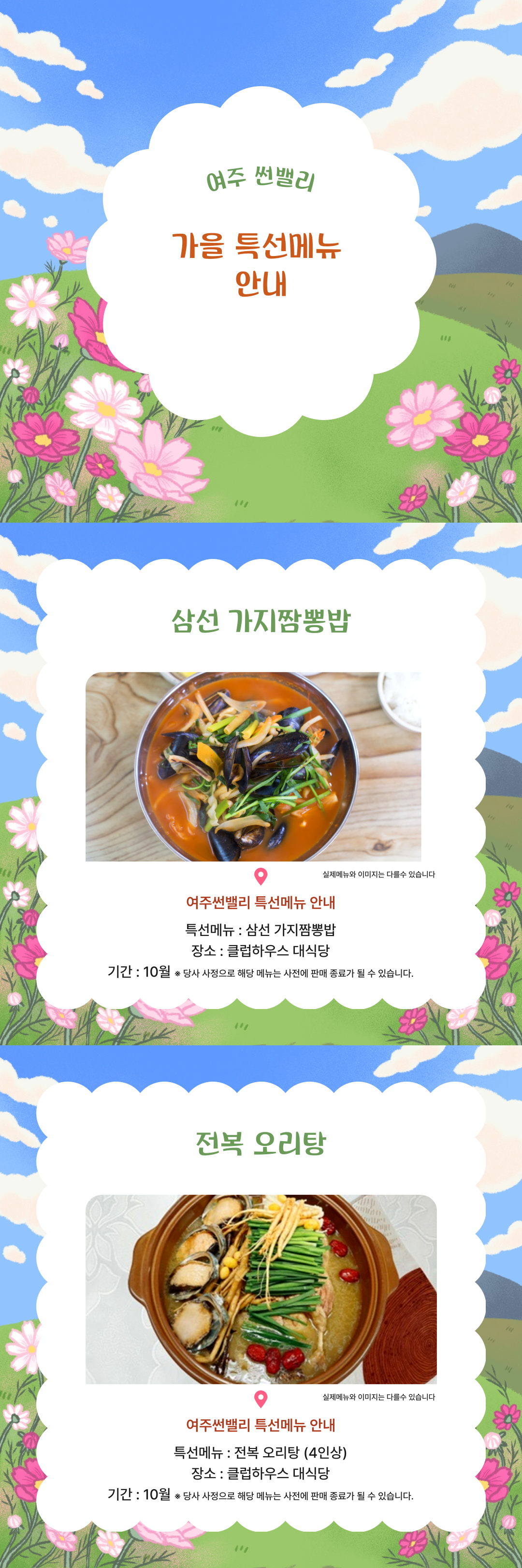 제목여주썬밸리 가을특선메뉴 안내 2025-09-02
